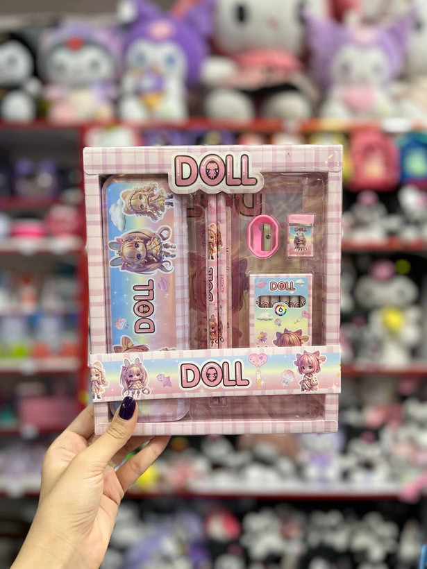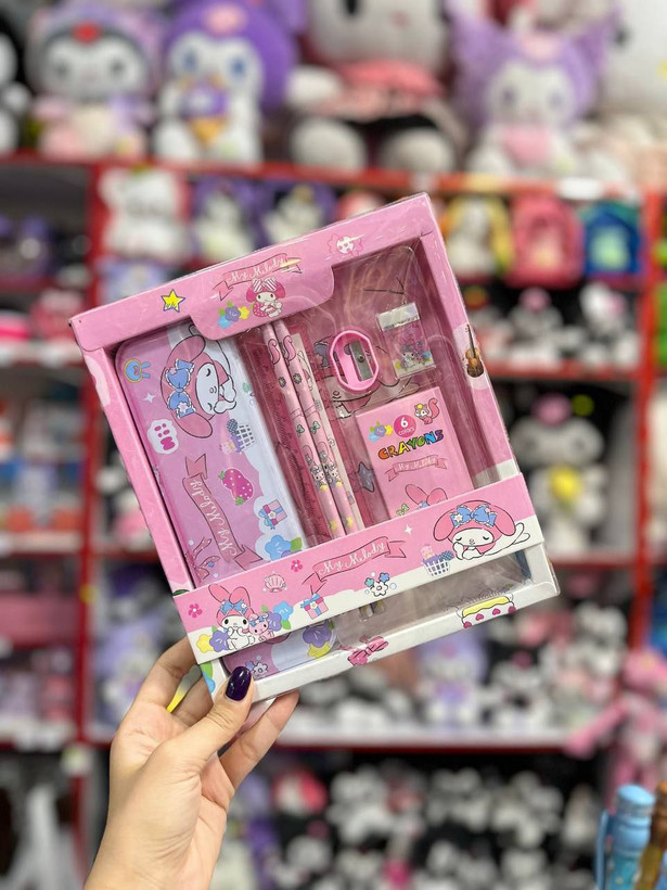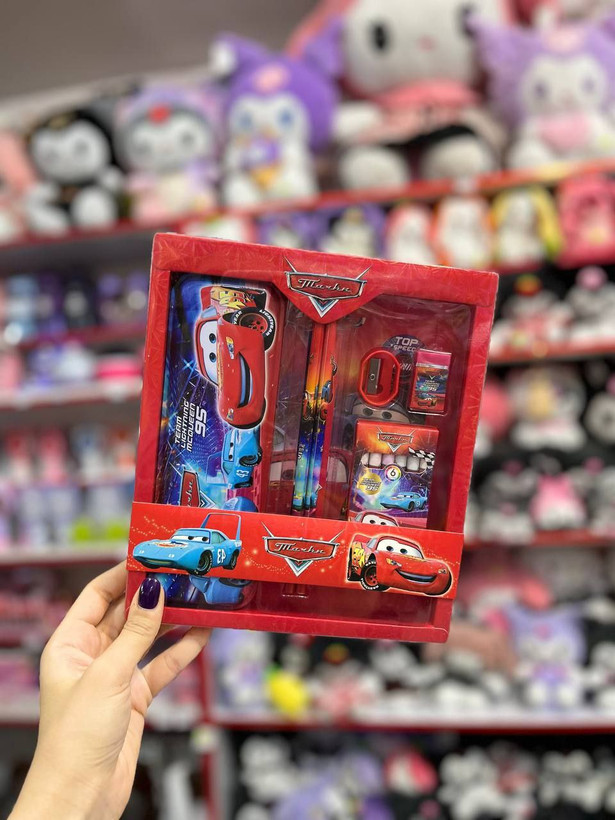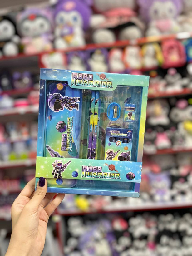 • شامل مداد، پاکن، تراش، خطکش، مداد شمعی و جامدادی فلزی