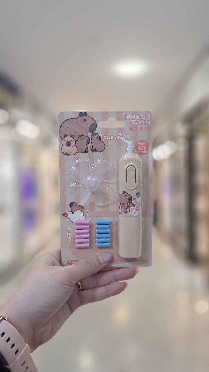 پاکن برقی طرح کاپیبارا یه لوازمتحریر بامزه و کاربردیه که هم ظاهر فانتزی داره هم حسابی به درد استفادهی روزمره میخوره. این پاکن بهصورت برقی کار میکنه و پاککردن رو تمیزتر و راحتتر میکنه، مخصوصاً برای جزئیات ریز و خطهای دقیق.