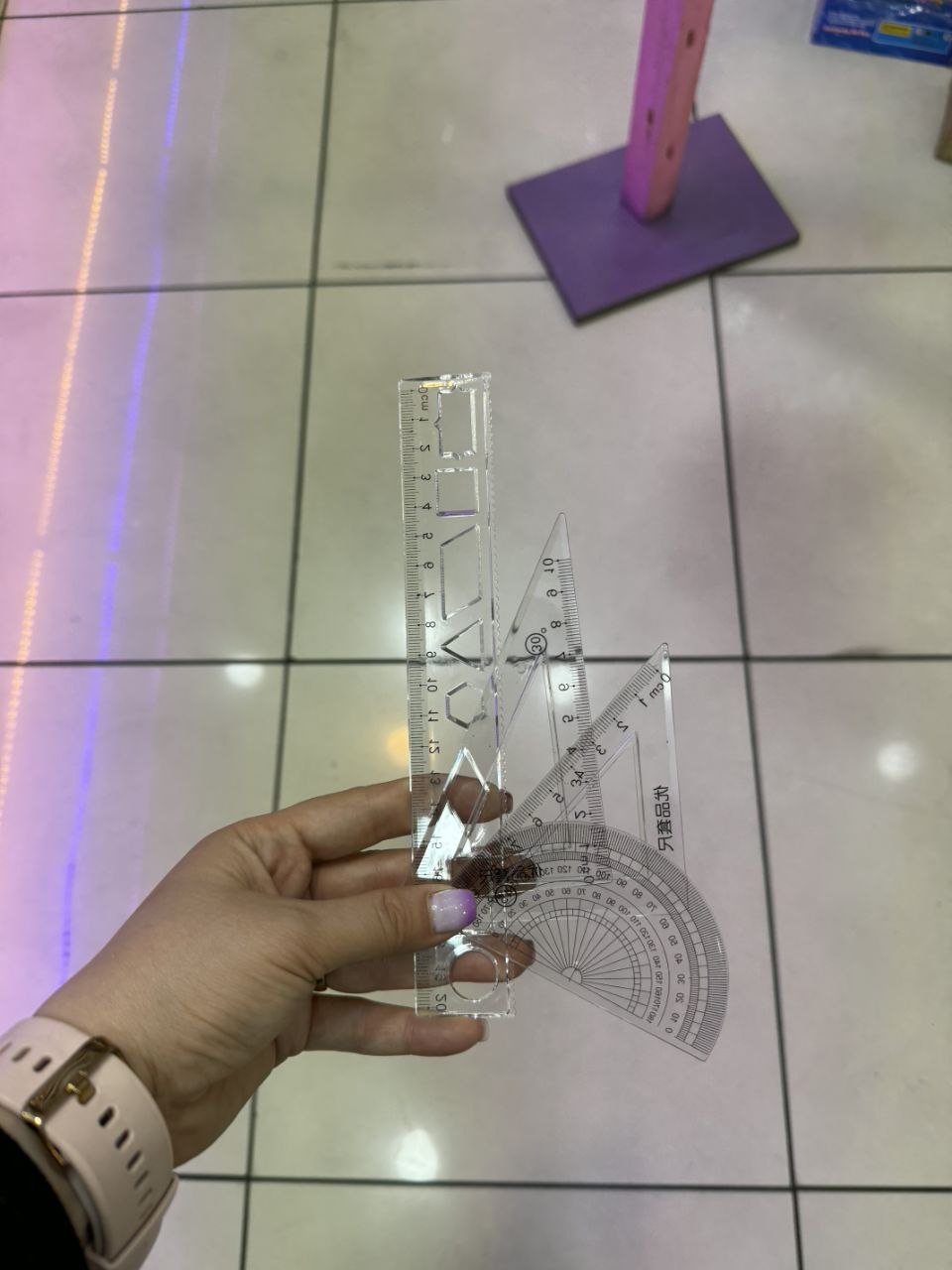 هر ست شامل: خط کش ۲۰ سانتی -گونیا ۹۰ درجه-گونیا ۴۵ درجه -نقاله