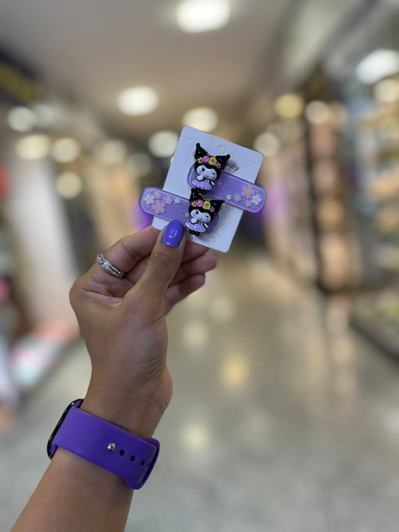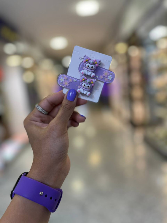 گیره مو طلقی بنفش با پلاک کرومی دو رنگ، یه ترکیب جذاب از سادگی و درخششه
