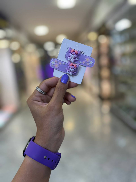 گیره گیره مو طلقی بنفش با پلاک کرومی