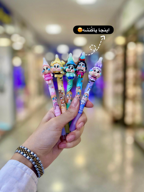 روی دستهاش یه عروسک پیکسلی خوشگل وصل شده که اگه اون رو فشار بدی، نوک خودکار بیرون میاد.